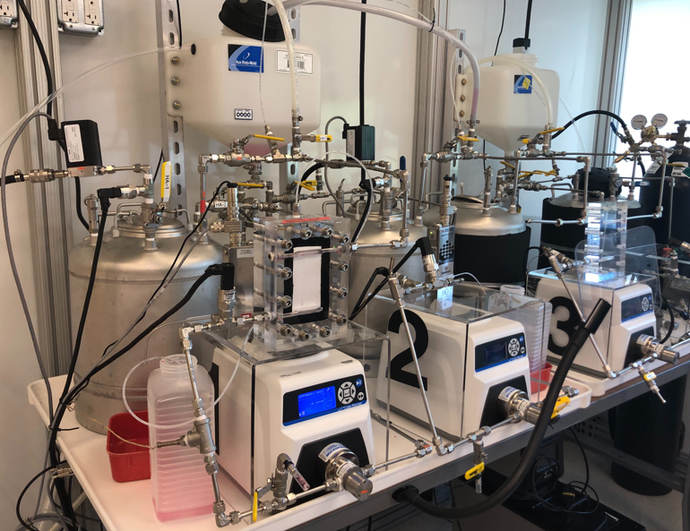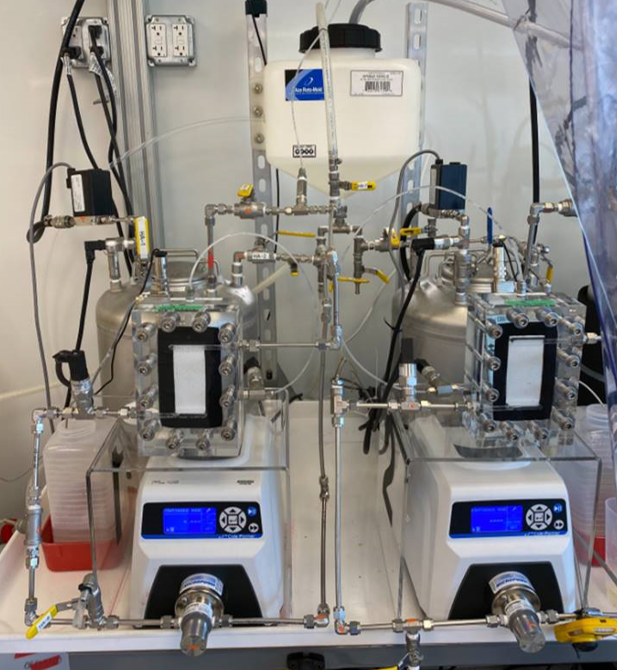 Not all components are procured, such as the membrane testing cell shown above. The membrane is sandwiched between two pieces of the cells, sealed by a custome O-ring (which I lasercut). I custom made the membrane cells using machine shop equipment (CNC mill) since we could not find ready made cells with reasonable costs and approriate design.